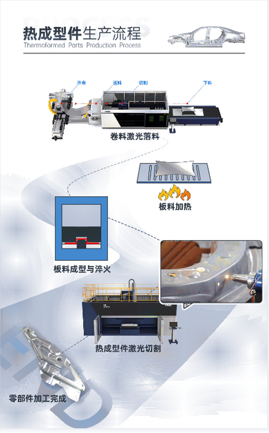 投身全球技術(shù)競賽,宏山激光Cell3015G三維五軸激光加工中心為中國制造業(yè)可持續(xù)發(fā)展注入新的生命力,作為汽車熱成型件專業(yè)解決方案,給汽車行業(yè)的發(fā)展帶來了驚喜與突破,配合3頭3梁卷料激光切割機,“穩(wěn)將”煥新,提質(zhì)增效,核心競爭力更上一層樓。
